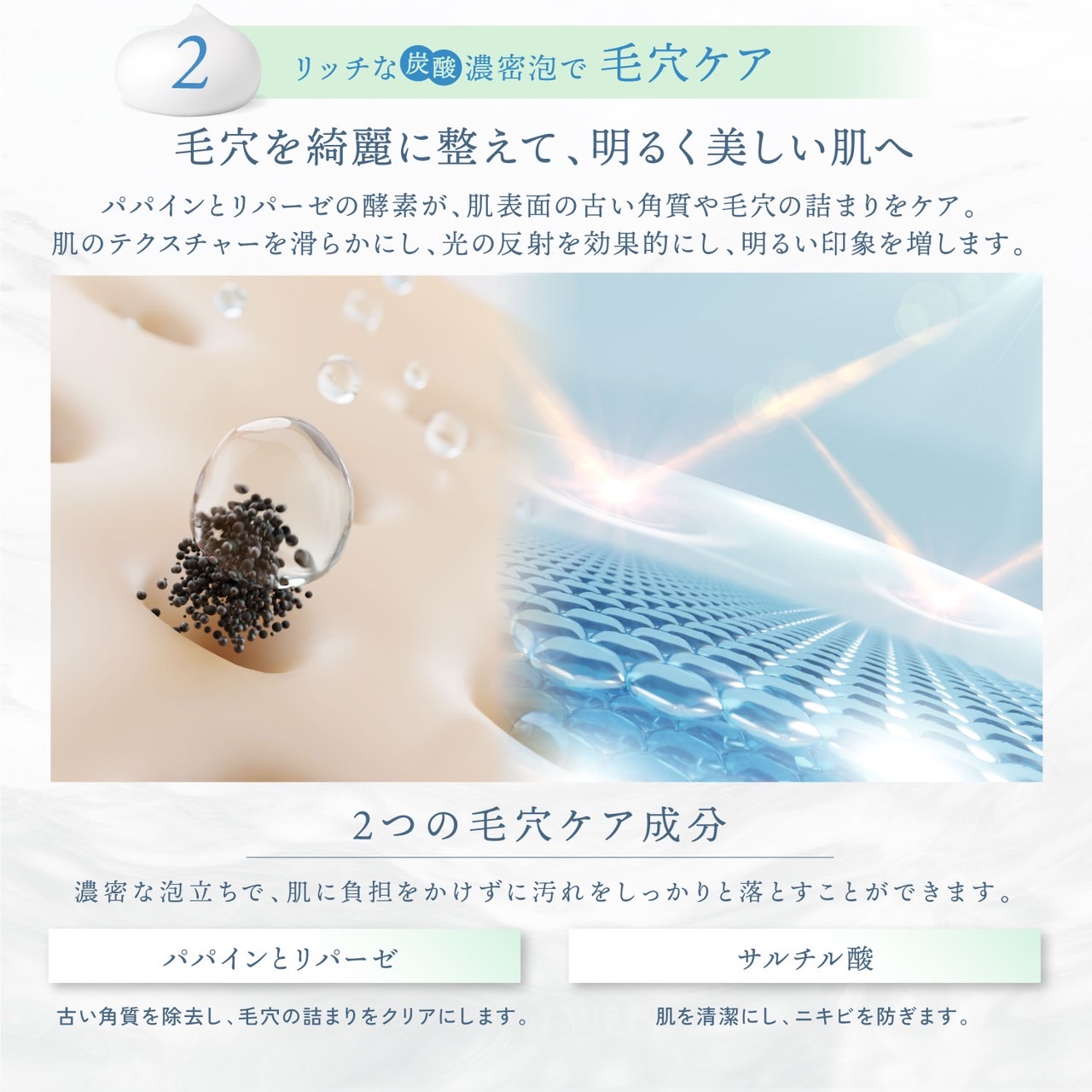 - 炭酸泡が毛穴の汚れを吸着しながら肌をやさしく洗浄