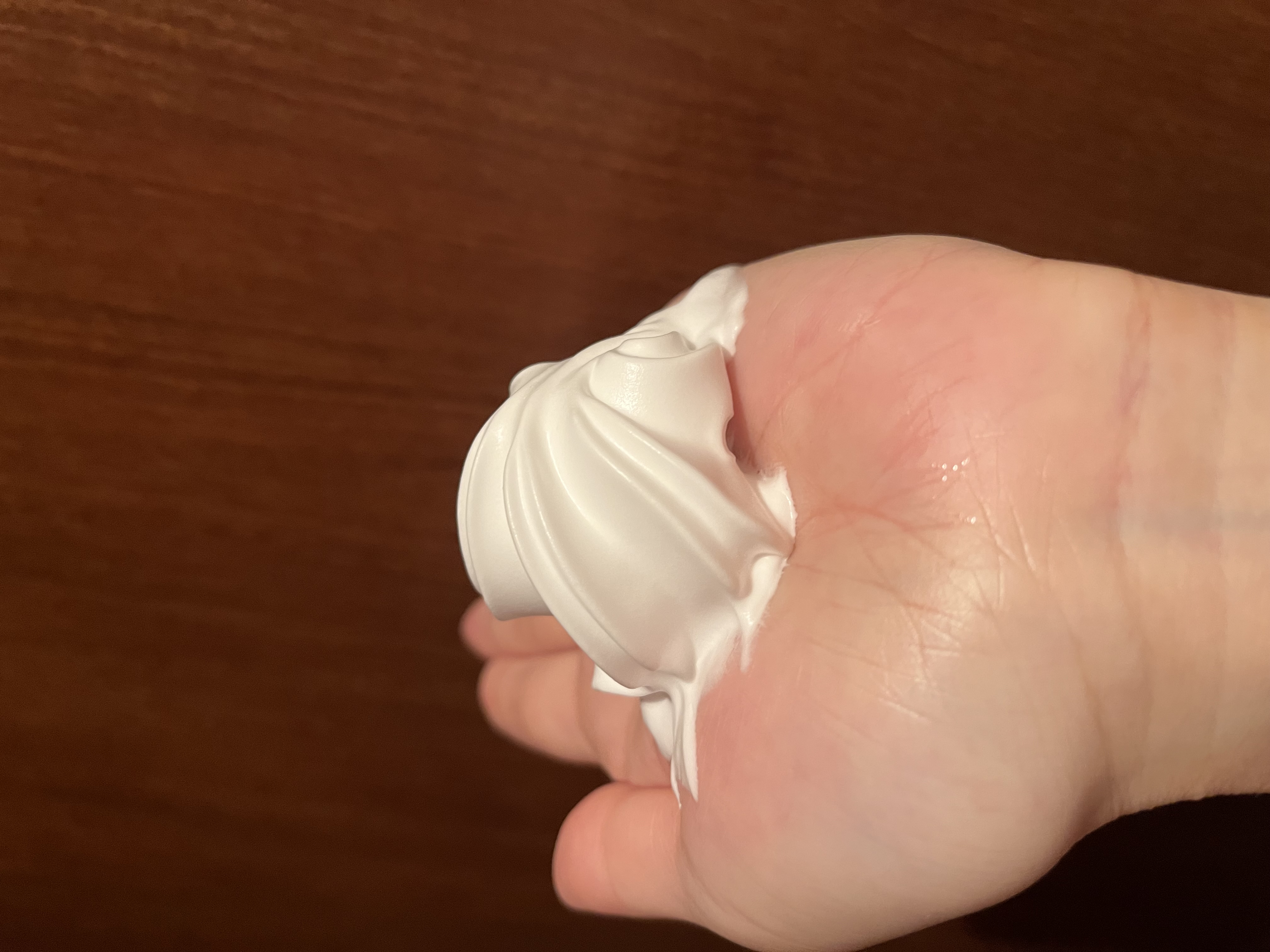 - 顔を濡らした状態で、適量(ピンポン玉1個分)を手に取ります