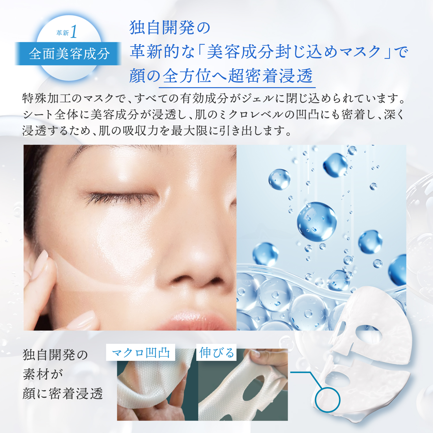 - 厚みのある高密着マスクシートが肌と一体化し、美容液を余すことなく届ける