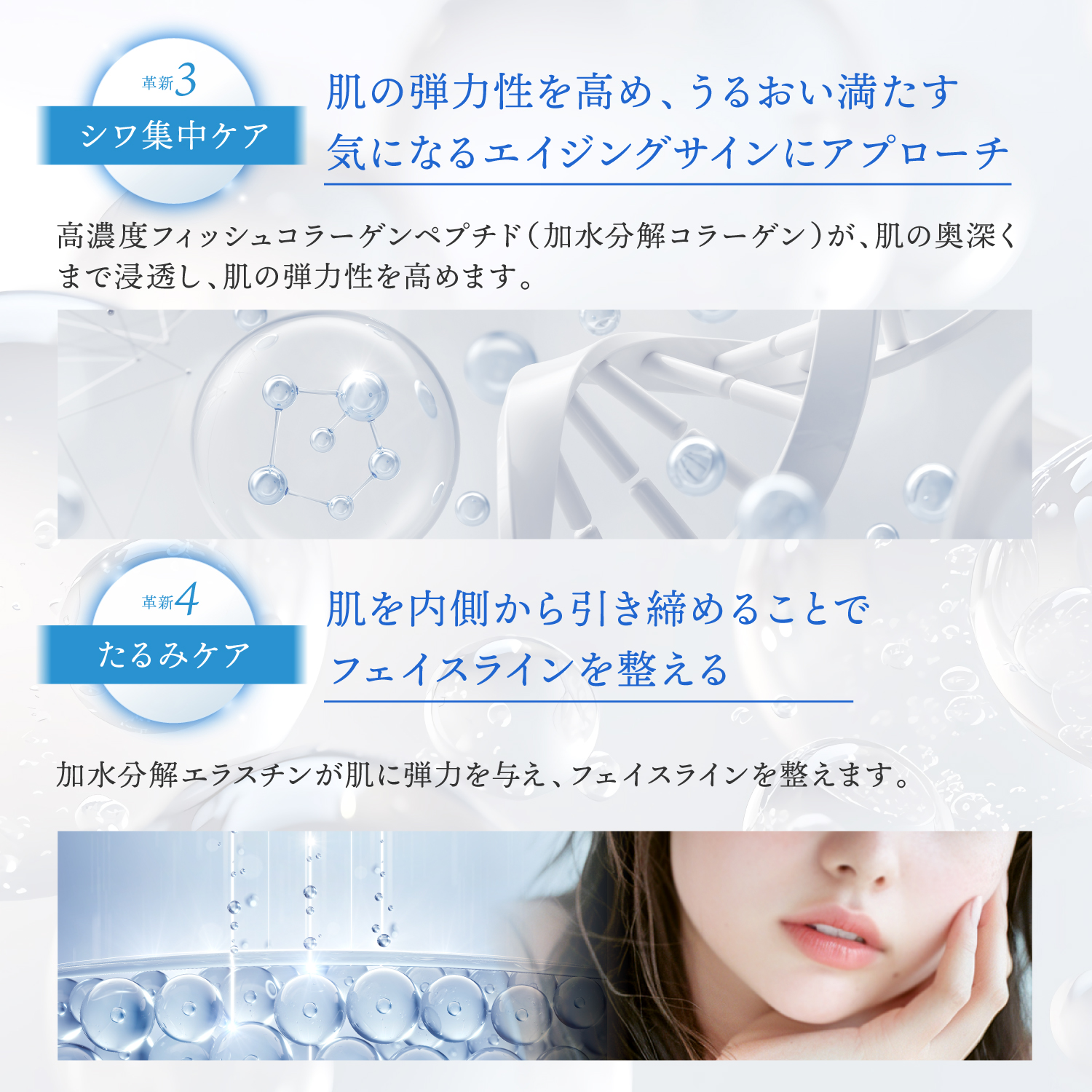 - 加水分解エラスチン配合で、年齢肌を引き締め若々しい印象へ
