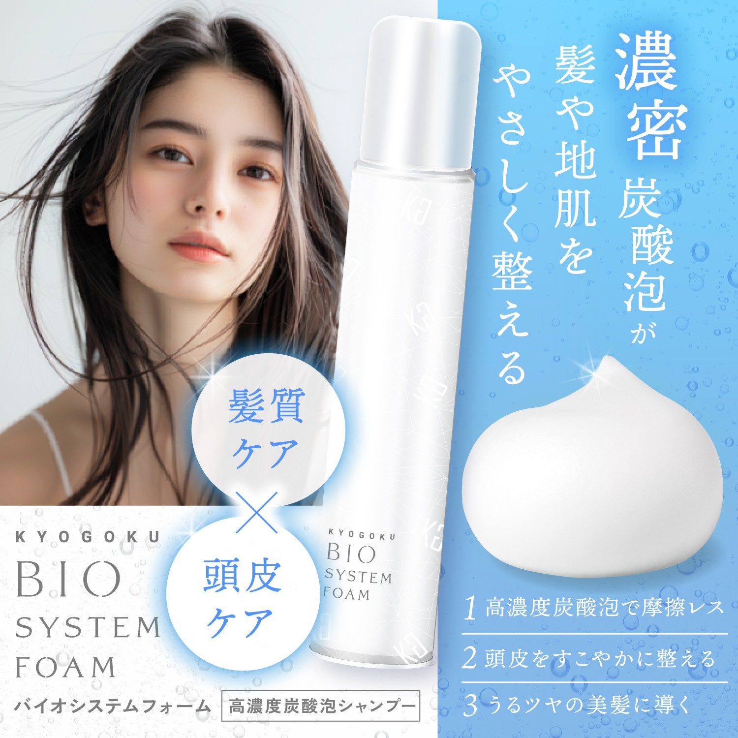- KYOGOKU独自のBIO SYSTEM処方により、炭酸泡の力で頭皮の皮脂・汚れを浮かせてすっきり洗浄。きめ細かなマイクロバブルが毛穴まで浸透し、サロン帰りのようなクリアな頭皮環境を自宅で実現します。