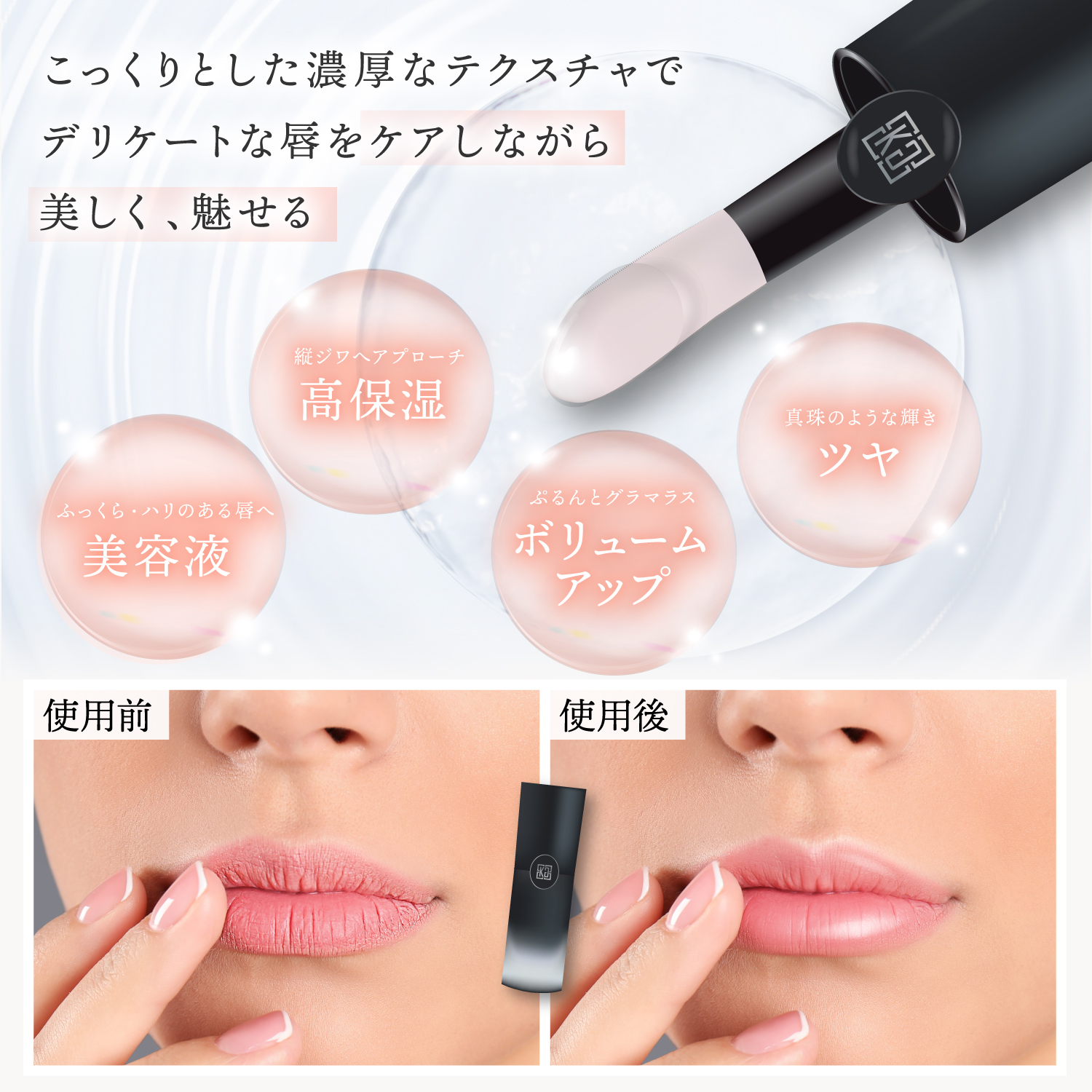 - 唇のふっくら感を引き出すプランプ効果と、長時間うるおいを保つスキンケア成分を融合。