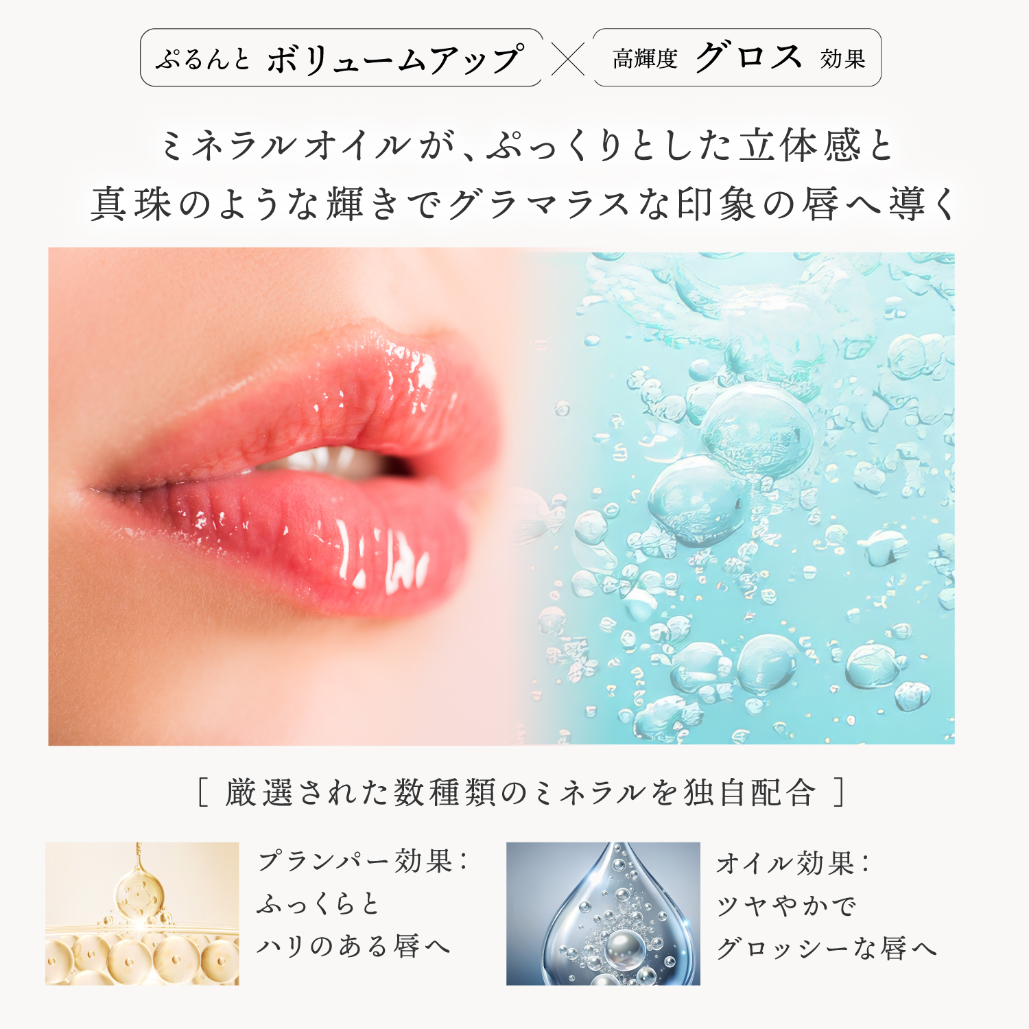 - 独自開発のプランピング処方が、塗布後すぐにハリ感とボリューム感を演出