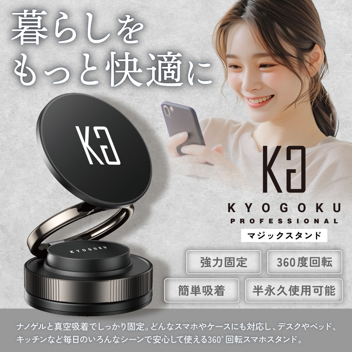 KYOGOKU マジックスタンド スマホホルダー 自撮り用 ドラマや映画を手軽に鑑賞 車 ナノゲル吸着×真空吸盤 W固定構造 magsafe対応 360度回転 N60磁石 片手操作 iPhone Android全機種対応 スマホスタンド 車用 カー用品