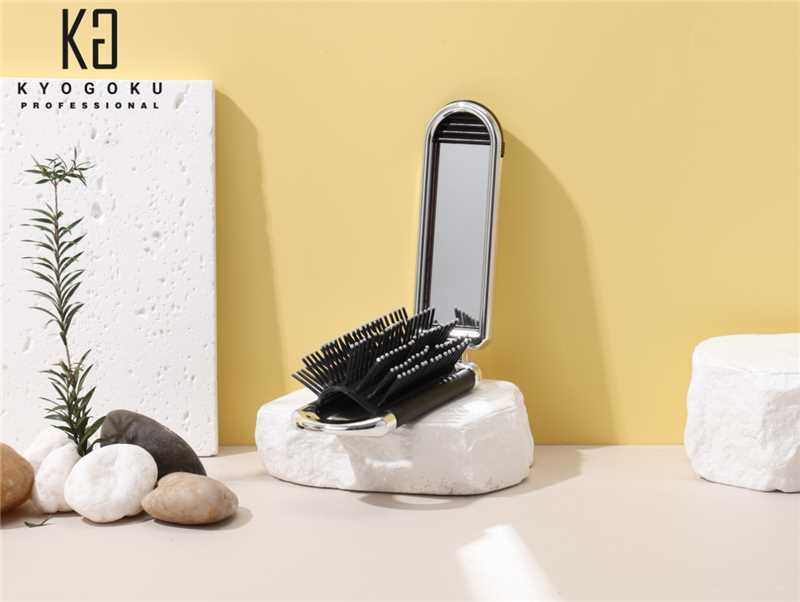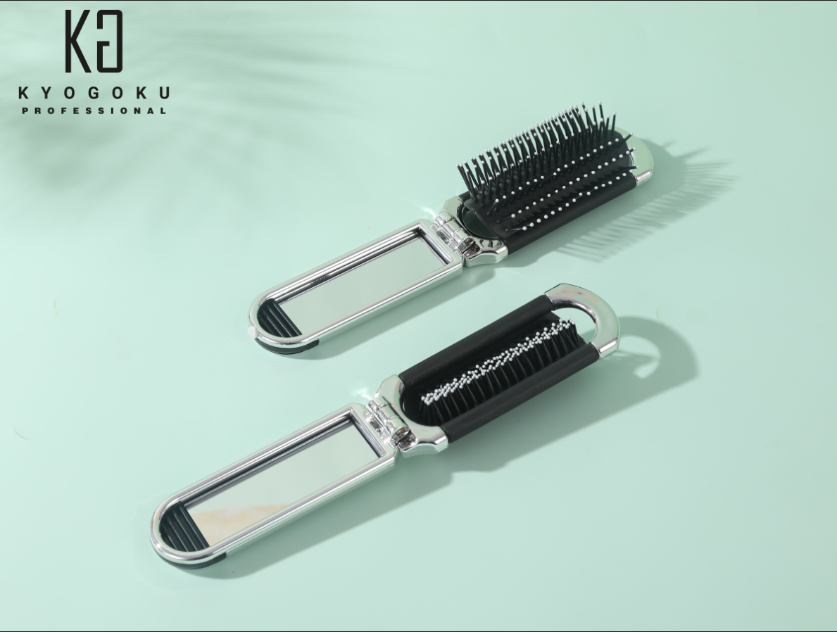 Kyogoku ミラーブラシ 鏡付き 折りたたみ式×高級デザイン メイク直し・ヘアセット