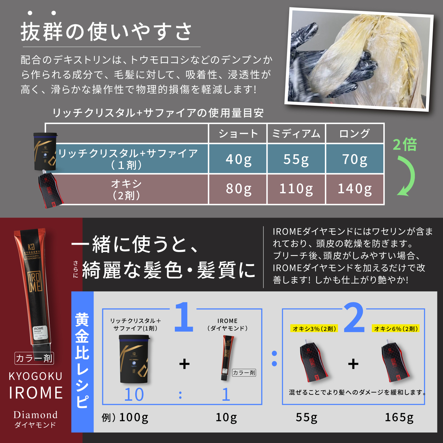 KYOGOKUリッチクリスタル+ サファイア(ウルトラブリーチ) 髪が白くなるホワイトブリーチ 美容室専売品 ダメージ補修 ダイヤモンドブリーチ 髪をケアしながらブリーチ ハイブリーチ